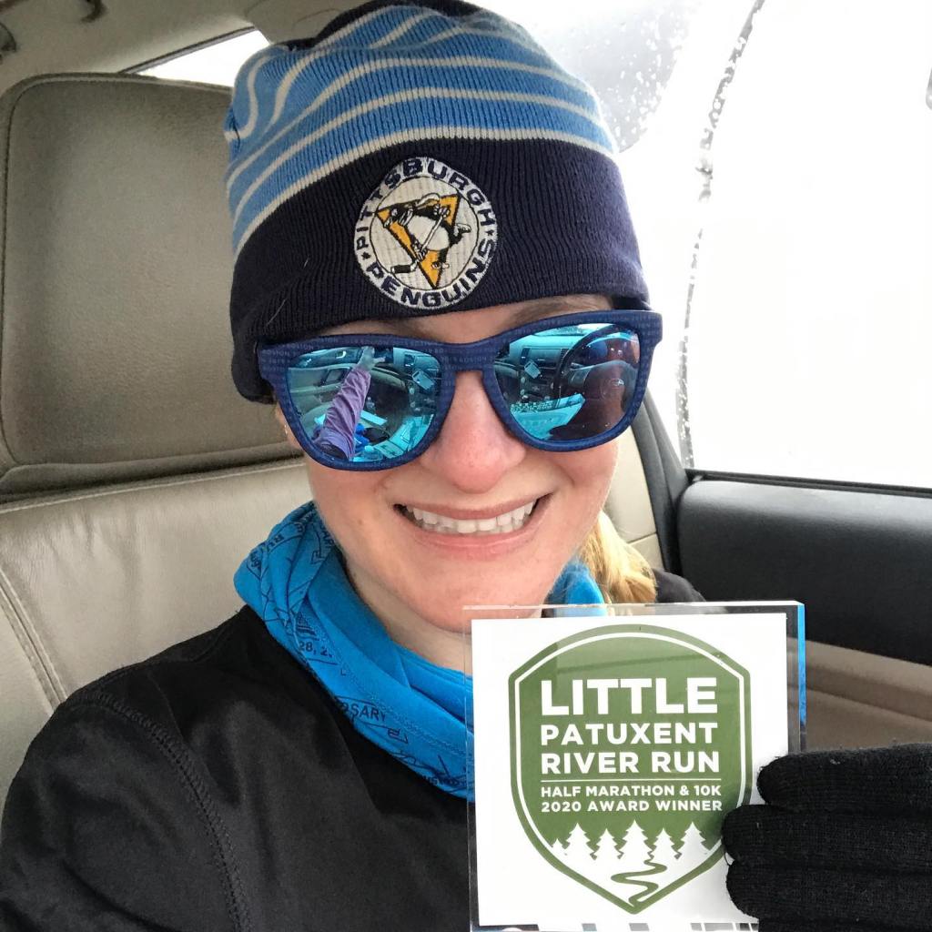 On Super Bowl Sunday, I ran Rip It Events’ annual Little Patuxent River Run Half Marathon and 10K, opting for the 10K. This is a trail race and while I’ve done the half marathon twice before, I didn’t want to risk injuring myself two months before a big goal race. (I’m klutzy.) This was actually the best weather we have EVER had for this race — it’s usually really cold and last year, it was icy in some sections on the trail. But this year, the weather was in the 40s and it was nice and sunny. I planned to run conservatively, and was very happy with my performance — I won my age group, finished fourth overall female and averaged a 7:58 pace for 6.55 miles (the 10K course is a bit long).