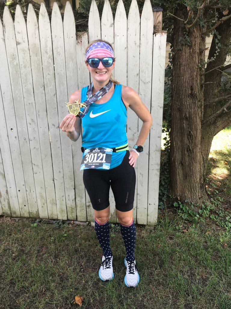 Then, in September, I raced the virtual Market Street Mile and ran a 6:11 — exactly what I ran last year, when the race happened in person. I ran it on my lunch break — yay for working from home for the foreseeable future — and was hoping to squeak under six minutes, since I somehow ran a 5:56 mile earlier this year. This run burned like hell and I have no idea how I could have run it 15 seconds faster. But I’m happy with that effort. According to the online results, I was the second female overall. The first place female was a 46-year-old who ran a 5:46! Fast!!